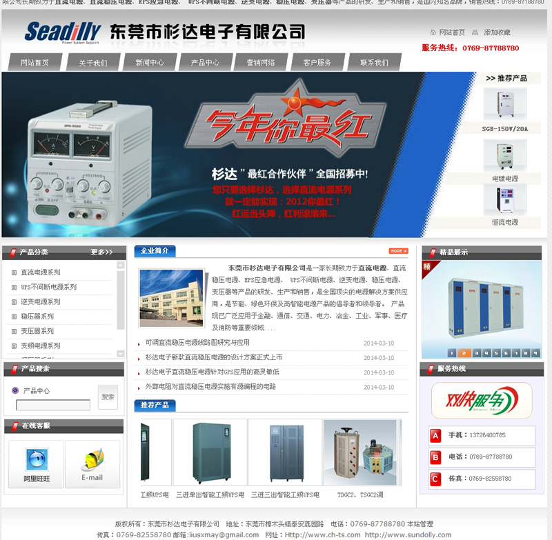 东莞杉达电子有限公司是一家长期致力于直流电源、直流稳压电源、直流稳压开关电源、 UPS不间断电源、逆变电源、稳压电源、变压器等产品的生产,研发和销售,是全国顶尖的电源解决方案供应商,是节能、绿色环保及高智能电源产品的倡导者和领导者。 产品现已广泛应用于金融、通信、交通、电力、冶金、工业、军事、医疗及消防等重要领域。公司可根据客户要求设计产品,满足客户在不同环境中的使用,整机从零配件、组装、调试至安装,公司可全部独立自主完成。